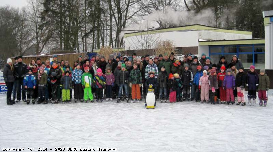 Fast 100 DLRG-Mitglieder mit Bezirks-Jugend auf der Eisbahn