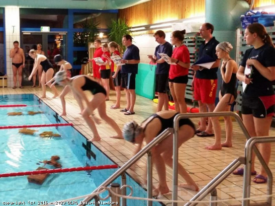 Die Landesmeisterschaften der DLRG im Rettungsschwimmen – ein Event mit bis zu 2000 Teilnehmern, dass im März gemeinsam mit dem Landesjugendtreffen in Nienburg stattfindet – stehen bevor. Rechtzeitig vorher fand nun der wichtige Qualifikationswettkampf, nämlich die Bezirksmeisterschaften im Rettungsschwimmen, im Hallenbad Rehburg statt. 35 Teilnehmer im Einzel, von der Altersklasse (AK) 12 bis zur offenen AK, zwei Senioren im Einzel und sieben Mannschaften gingen dabei an den Start. Neben spannenden Läufen gab es an diesem Abend auch für viele Schwimmer neue persönliche Bestzeiten. Wenn man dabei an den momentan leistungsmäßig steigenden Trainingszyklus im Hinblick auf die Landesmeisterschaften und die hohe Wettkampfbelastung mit den Event ... Mehr erfahren